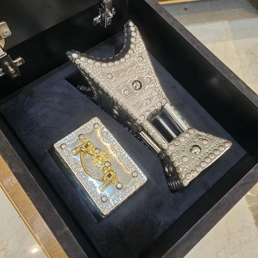 طقم إهداء مبخرة مسامير فاخر وعلبة للعود شامل التوصيل