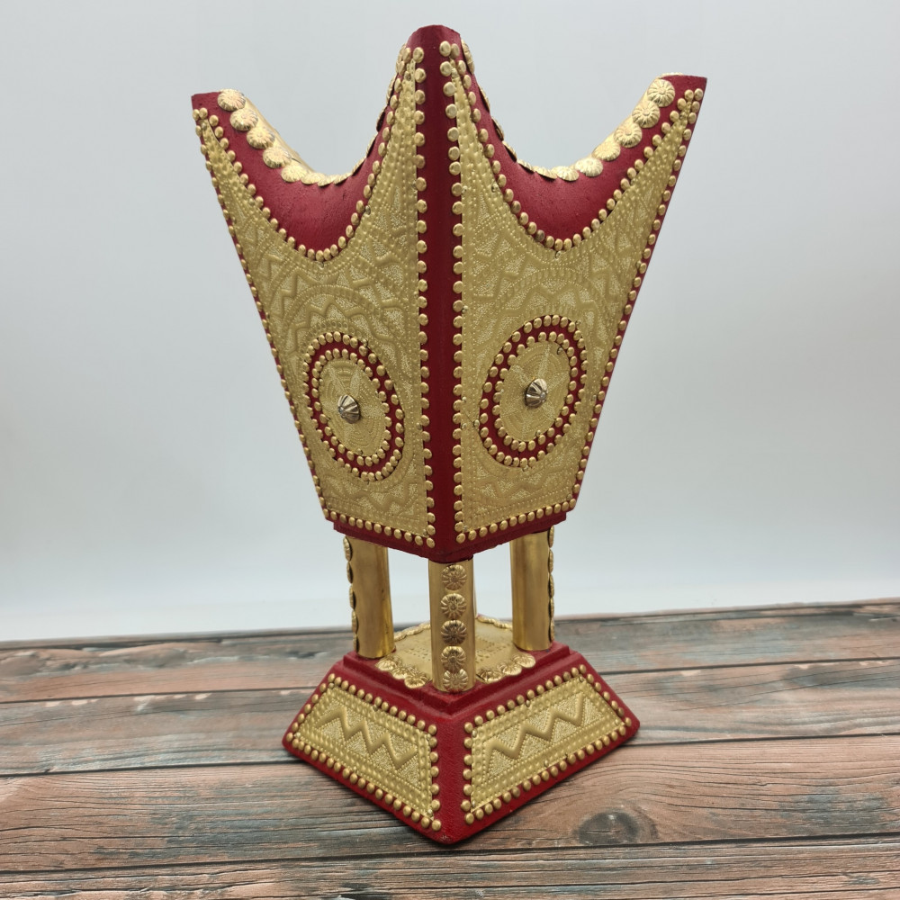 2. المباخر الصاج: تصنع من خشب الأثل الطبيعي الناشف ثم يتم تكسيتها بألواح الصاج الحديد الفضي أو الذهبي. وتتميز بمتانتها وقدرتها على تحمل الحرارة العالية، مما يجعلها مثالية للاستخدام المتكرر.