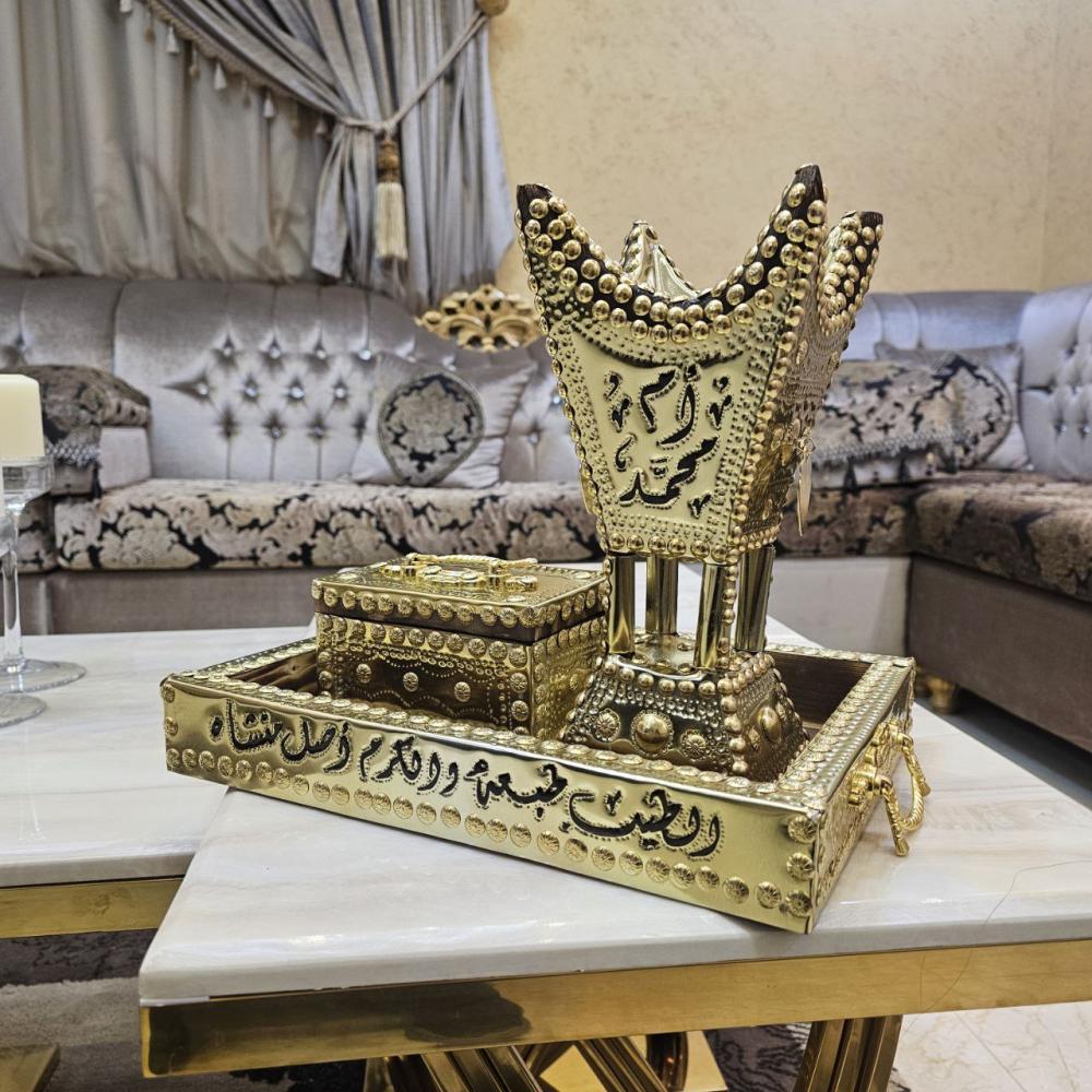 طقم مبخرة ذهبية أنيقة حجم كبير جداً - مع توصيل مجاني