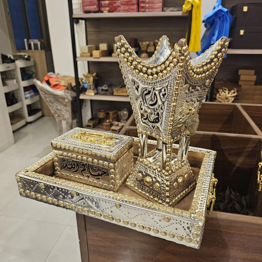 طقم مبخرة فضية أنيقة حجم كبير جداً - مع توصيل مجاني