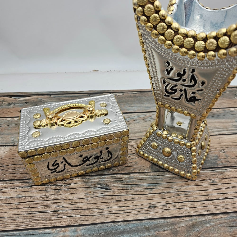 2. طقم إهداء مبخرة كبير ومسامير فاخر بصندوق تراثي: