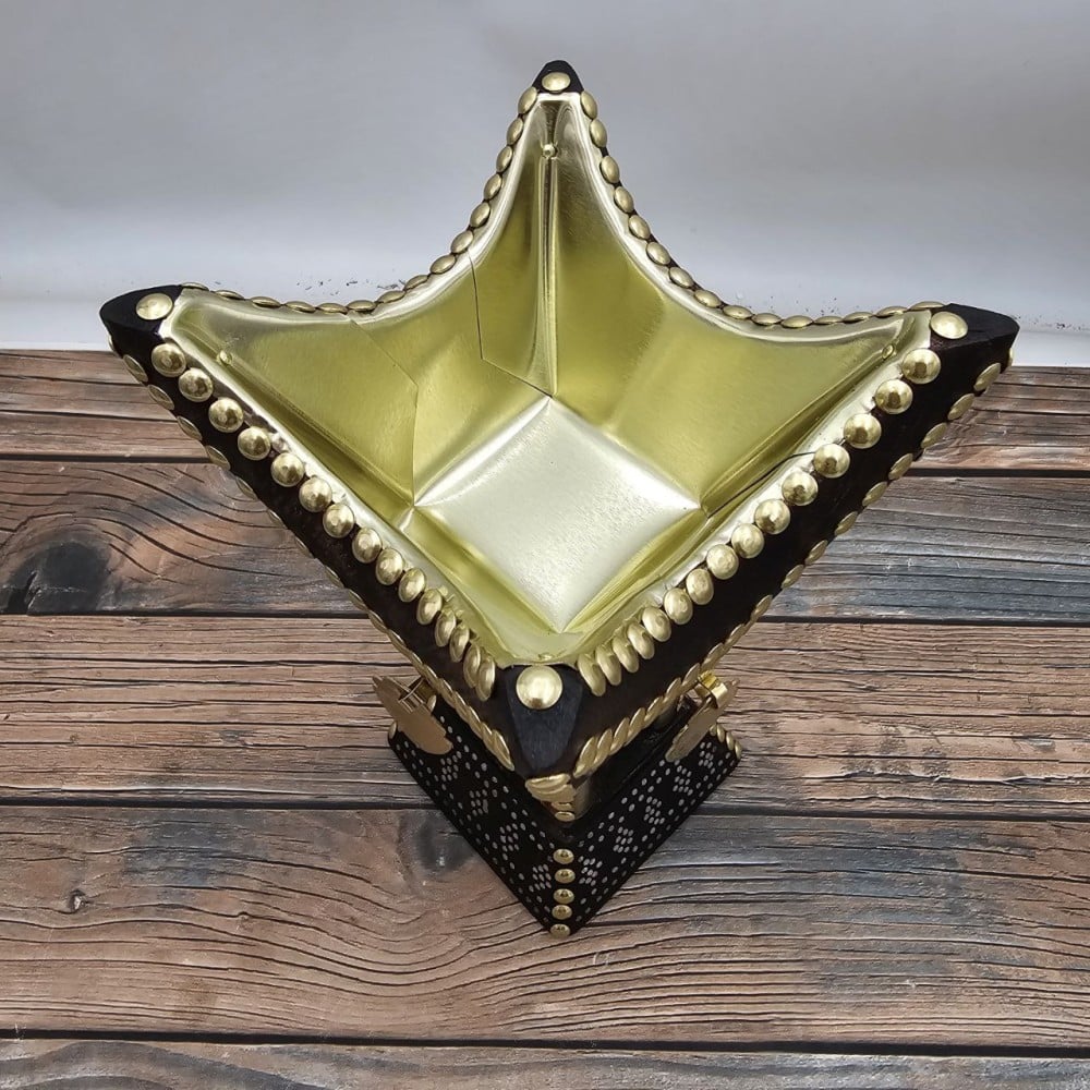 2. المباخر الصاج: تصنع من خشب الأثل الطبيعي الناشف ثم يتم تكسيتها بألواح الصاج الحديد الفضي أو الذهبي. وتتميز بمتانتها وقدرتها على تحمل الحرارة العالية، مما يجعلها مثالية للاستخدام المتكرر.
