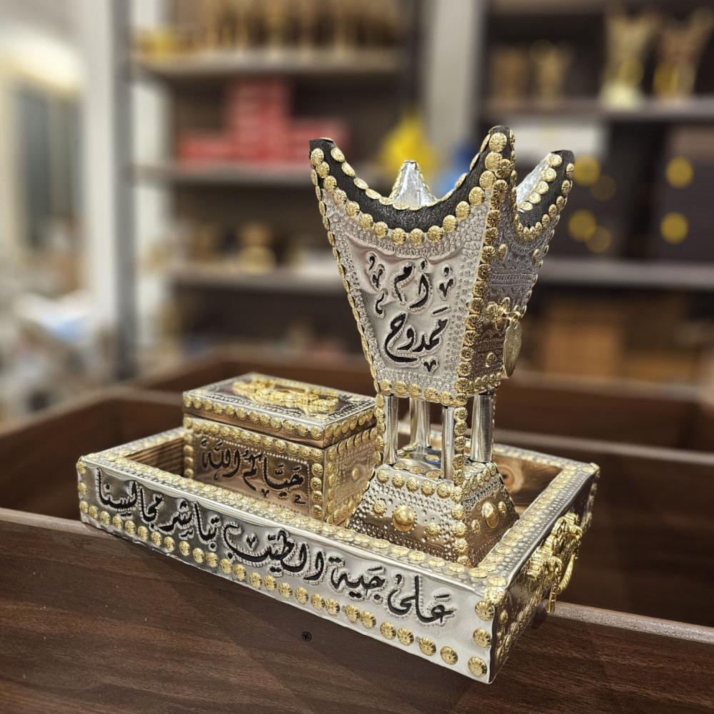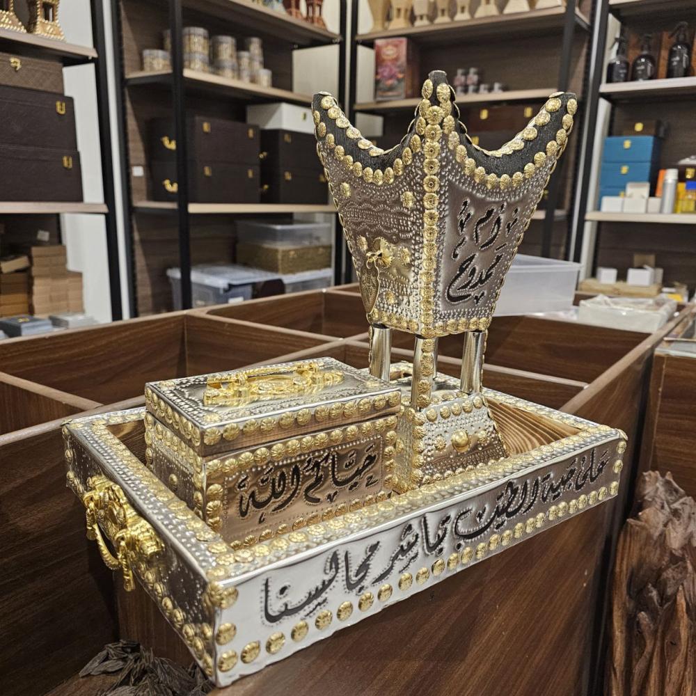 طقم إهداء فاخر مبخرة أنيقة حجم كبير جداً بمسامير ذهبية - مع توصيل مجاني