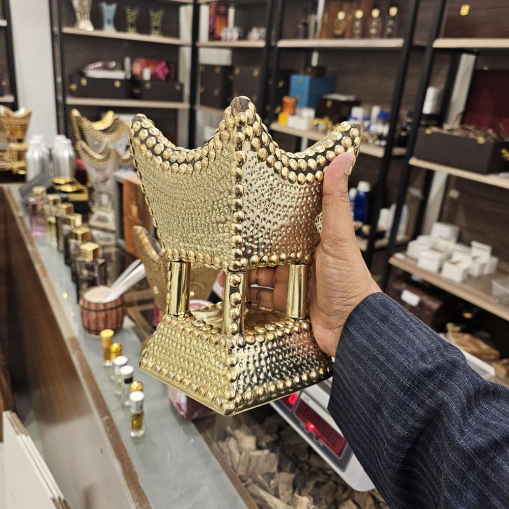 - الأجزاء: قاعدة مربعة، وعاء مستدير للجمر، وزخارف معدنية
