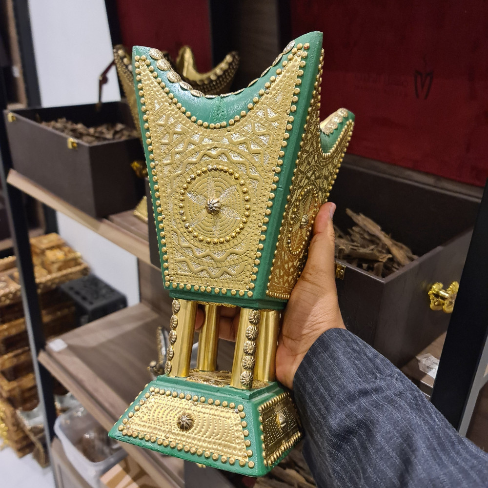 - Large Ha’il Incense Burner with Green Nail Inlays: Distinguished by green nail inlays, giving it a unique and modern appearance.