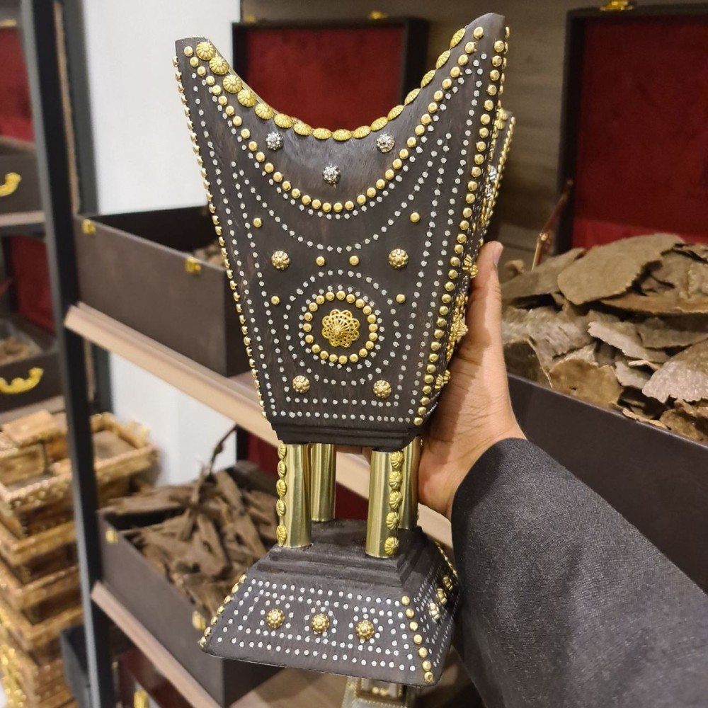 - Carved Burners: Made from natural dry sidr wood, drilled with numerous holes filled with aluminum rods, known as carving, and then sanded and decorated with colors and special nails, making them exquisite pieces of art.