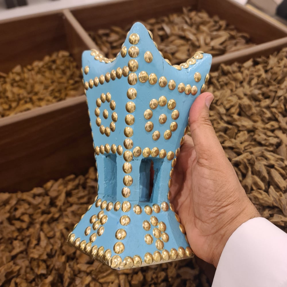 - Carved Burners: Made from natural dry sidr wood, drilled with numerous holes filled with aluminum rods, known as carving, and then sanded and decorated with colors and special nails, making them exquisite pieces of art.